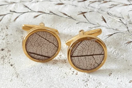 Spinki do mankietów z kolekcji Fau – z prawdziwym liściem