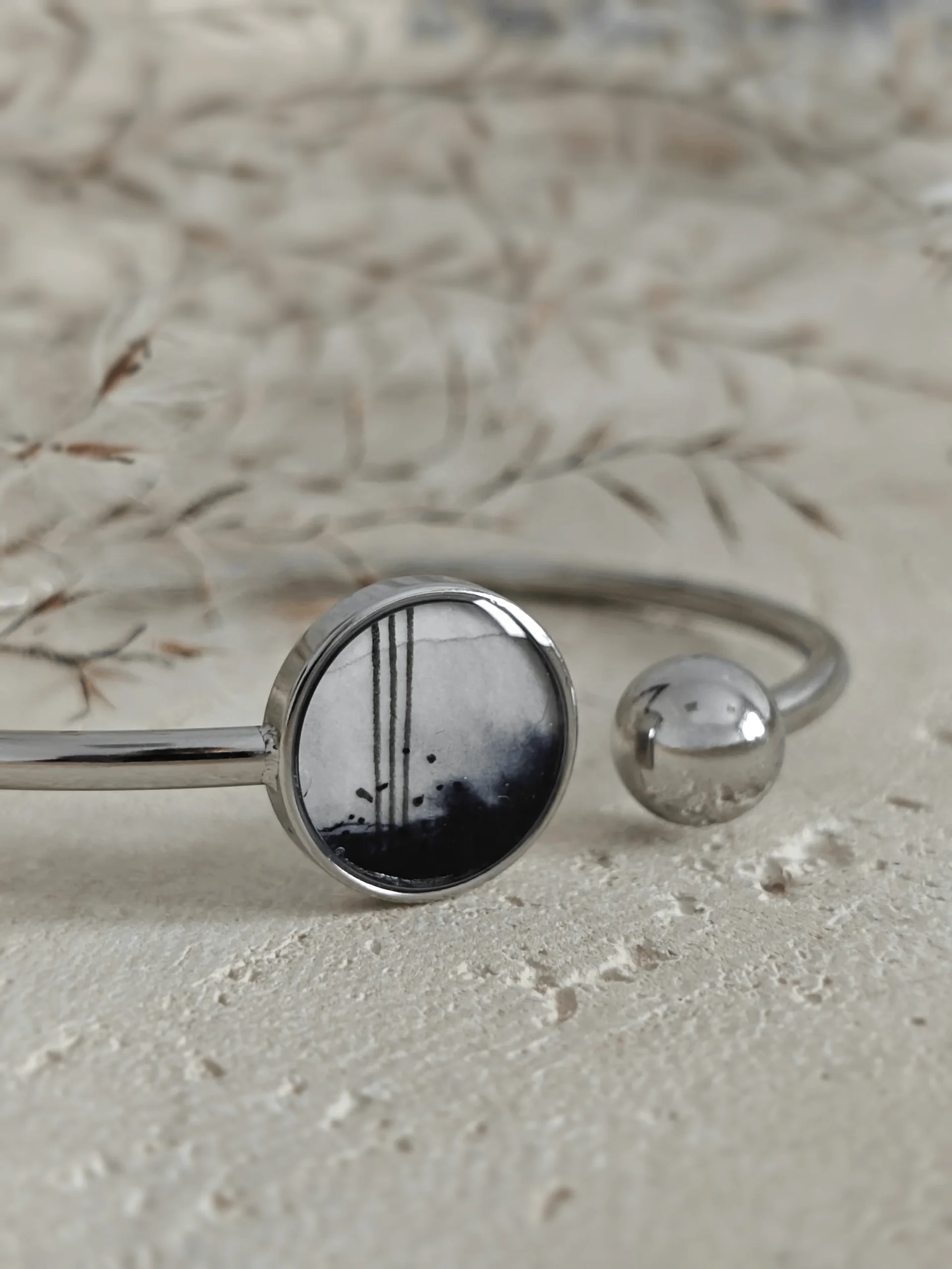 Komplet biżuterii czarnej, ręczie malowanej akwarelami składa się z 4 elementów: kolczyków sztyftów, naszyjnika na czarnym łańcuszku ze stali szlachetnej, regulowanej bransoletki i regulowanego pierścionka. Jednak zestaw i ilość elementów biżuterii w nim dobierasz samodzielnie. Nie nosisz kolczyów? Dodaj do zestawu tylko bransoletkę i naszyjnik. Chcesz sam naszyjnik z kolczykami? Nie ma sprawy, po prostu wybierz poniżej te elemnty z listy. Cena za komplet jest w Slow zawsze niższa, aniżeli gdybyś kupowała biżuterię oddzielnie. Czarna biżuteria jest biżuterią ponadczasową i uniwersalną, pasuje zarówno do stylizacji casualowych, swetrów, bluz, bluzek, jak i do eleganckich czy nawet wyjściowych strojów. Jedno jest pewne, ten komplet czarnej biżuterii jest na tyle unikatowy a jednocześnie uniwersalny, że wynosisz go do wielu okazji i przez długie lata nie wyjdzie z mody. Każdy kolczyk pierścionek, naszyjnik czy bransoletka są malowane ręcznie, więc mogą nieco różnić sie od zdjęć na stronie, ale dzięki temu są unikatowe. Jako artysta, rzemieślnik jestem Ci ogromnie wdzięczna za Twój świadomy wybór biżuterii autorskiej, biżuterii handmade, biżuterii polskiej. Wspierajac lokalnych artystów i rzemieślników, wkładających w swoją pracę całe swoje serce, otrzymujesz nie tylko najwyższą jakość wykonanych wyrobów, ale w tym niewielkim przedmiocie, zawarty jest ogrom mojej pasji do rękodziała, radości z tworzenia. Misja Slow, którą chcę się dzielić poprzez moją biżuterią, to aby każda osoba ją nosząca, dzięki niej pamiętała o małych dobrych wyborach w codziennym życiu. O niepośpiechu, odpoczynku, dbaniu o siebie i swój spokój. O tym by sobie odpuścić i zrobic trochę miejsca na to co jest dla Ciebie sensem życia. O tym by hamować w tym pośpiechu codziennych obowiązków, logistyki. Jesteś wyjątkowa, taka jaka jesteś, nie musisz starać się ponad swoje siły, możesz nie dać rady, możesz czegoś nie zrobić. Bo do czego się tak spieszymy?