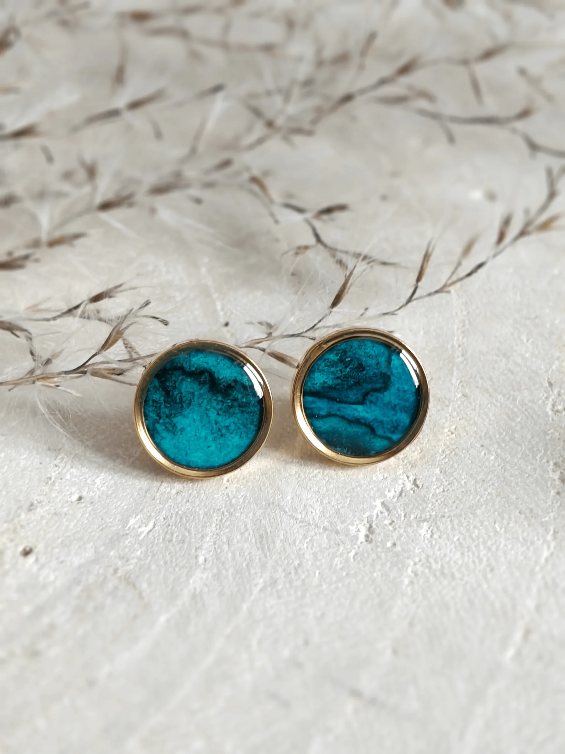 Kolekcja Marina z naszyjnikiem z jaspisu cesarskiego i z dodatkiem elementów ręcznie malowanych akwarelami, to wyjątkowy komplet łączący piękno minerałów i malowanej biżuterii. Głęboko turkusowy kolor jest niezwykle efektowny i świetnie komponuje się z wieloma stylizacjami – od klasycznej czerni i bieli, po granaty, brązy, żółcie, zielenie czy róże. Gwarantuję, że założysz ten komplet do wielu stylizacji, zarówno eleganckicj jak i sportowych. Jaspis cesarski niebieski to niezwykle piękny i energetyczny kamień naturalny, który od wieków fascynował ludzi swoim głębokim, turkusowo niebieskim kolorem i unikalnym wzorem. Mówi się że jaspis ten to kamień spokoju i intuicji.