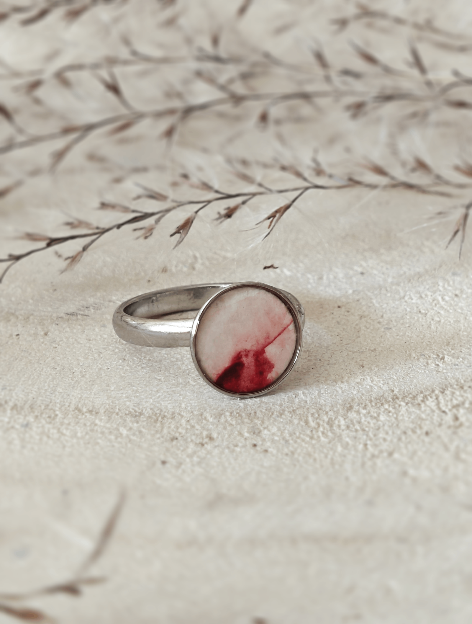 Rubus to delikatny komplet biżuterii z małymi kolczykami sztyftami malowanymi ręcznie akwarelami oraz minerałami o głębokiej bordowej barwie. Granat to minerał, który od wieków fascynował ludzi swoim głębokim, intensywnym kolorem i symboliką. Jego nazwa pochodzi od łacińskiego słowa „granatum”, oznaczającego „nasiono granatu”, ze względu na podobieństwo niektórych odmian do ziaren tego owocu. Granat jest często nazywany „kamieniem zakochanych”. Jego głęboka czerwień symbolizuje namiętność, pożądanie i głębokie uczucia. Granat był noszony przez wojowników jako talizman przynoszący odwagę, siłę i ochronę.