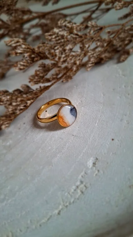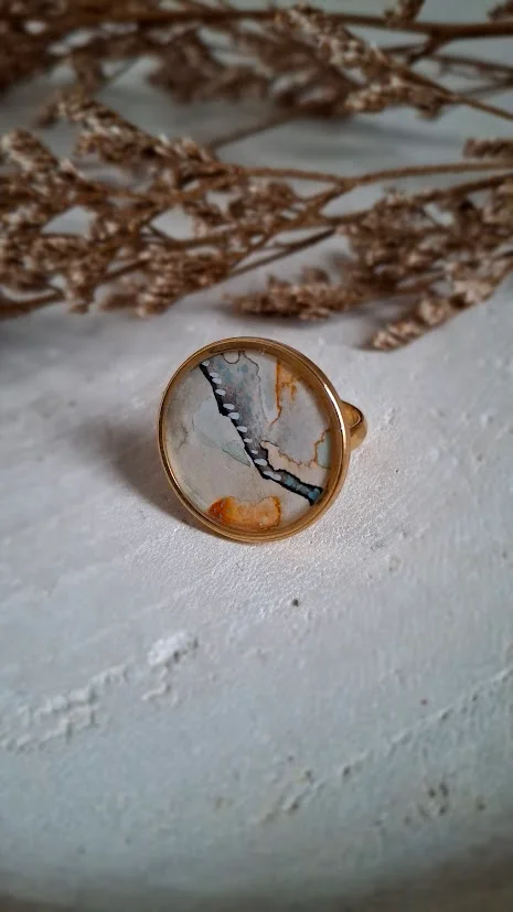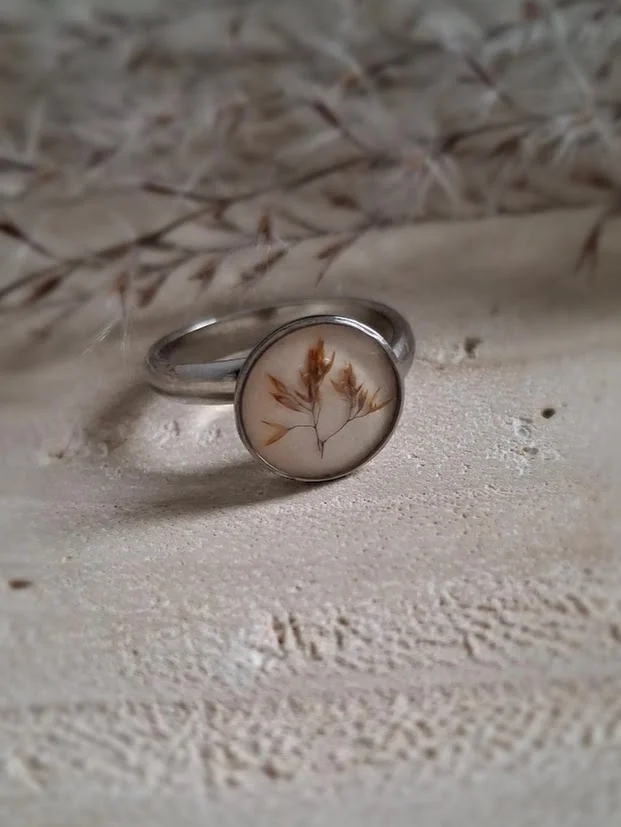 Pierścionek z małym oczkiem z trawą