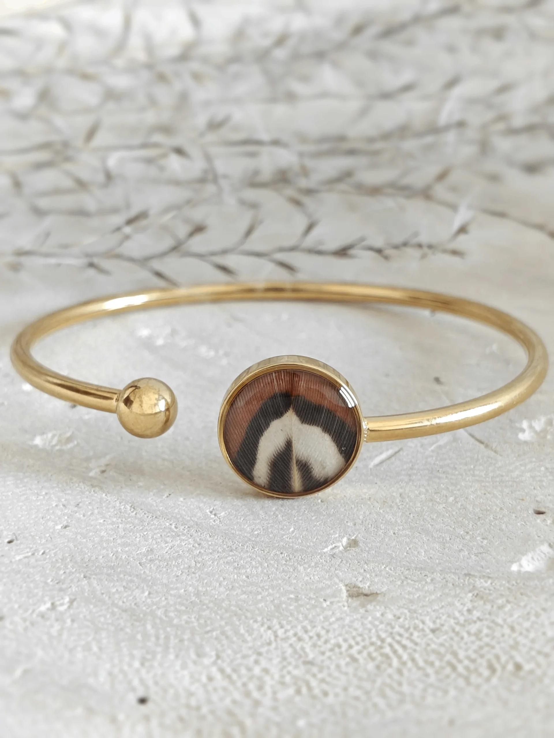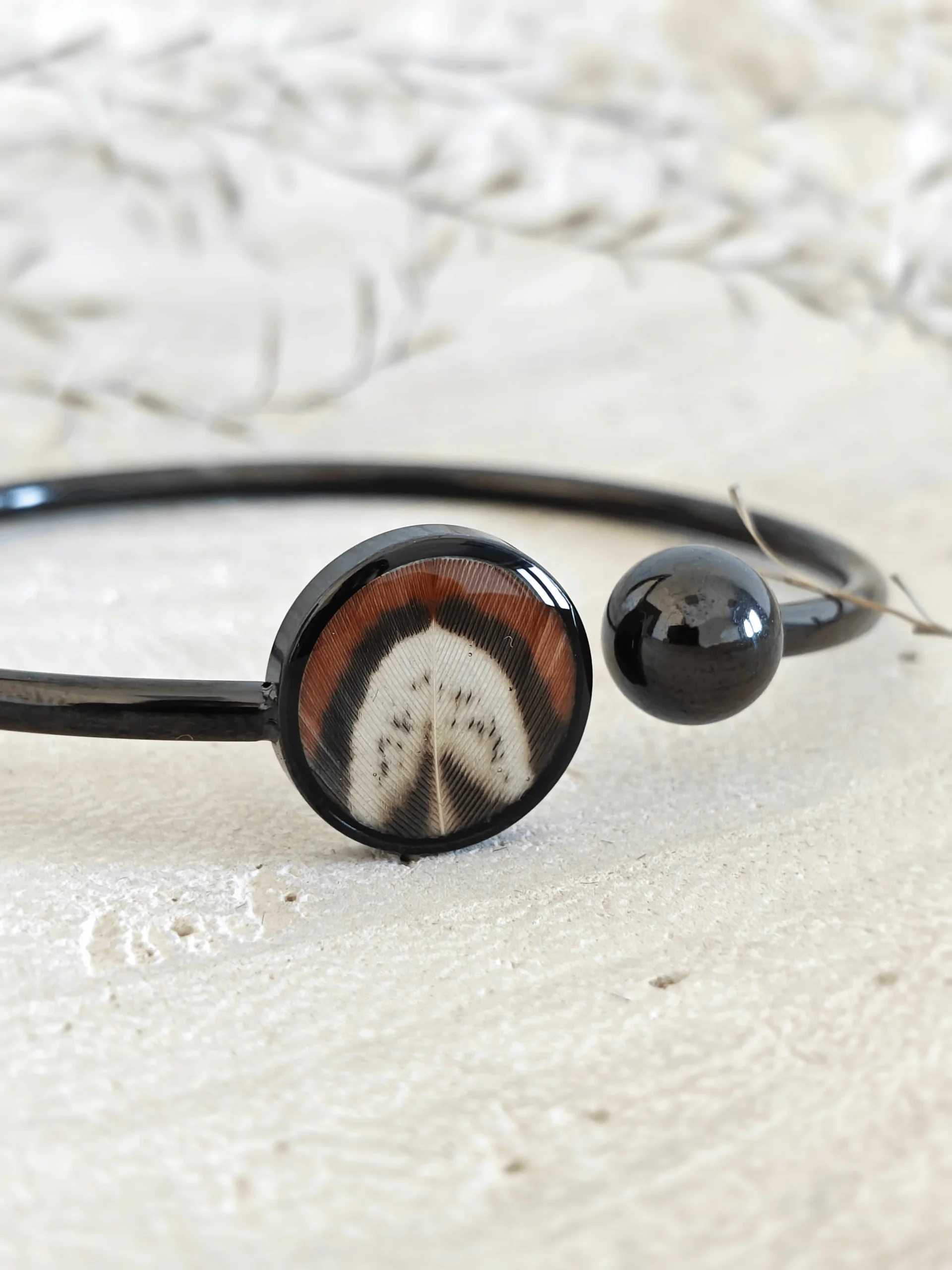 Kolekcja Pennata, czerpiąca swoją nazwę z łacińskiego określenia skrzydeł, to hołd złożony dzikiej naturze i jej nieskończonej palecie barw. Każdy element biżuterii staje się płótnem dla organicznej mozaiki, utkanej z autentycznych piór bażanta. Odnajdziesz w niej rytm głębokich brązów, miedzianych refleksów oraz kontrastowej bieli i czerni. Proces tworzenia to czysta precyzja – ręcznie układane pióra zostają utrwalone w krystalicznej żywicy jubilerskiej, która wydobywa ich niezwykłą, trójwymiarową strukturę. To biżuteria stworzona dla kobiet, które w dodatkach szukają czegoś więcej niż ozdoby – poszukują małych, noszalnych dzieł sztuki.