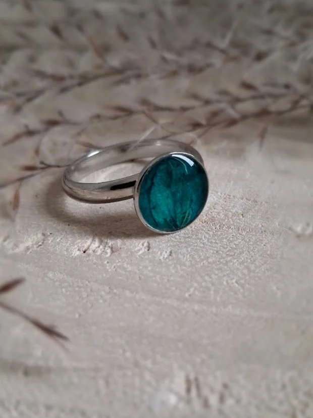 Pierścionek z małym oczkiem z turkusową hortensją