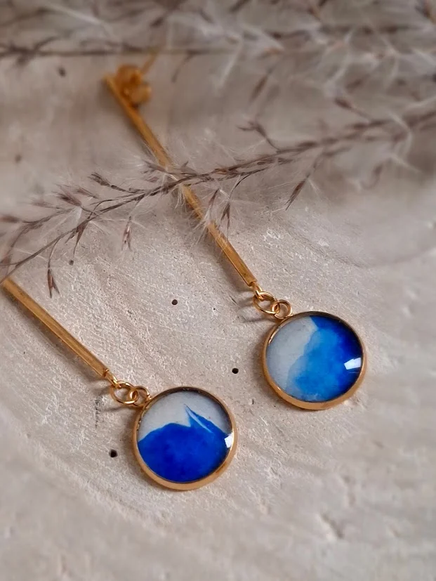 Kolczyki wiszące indygo z bielą