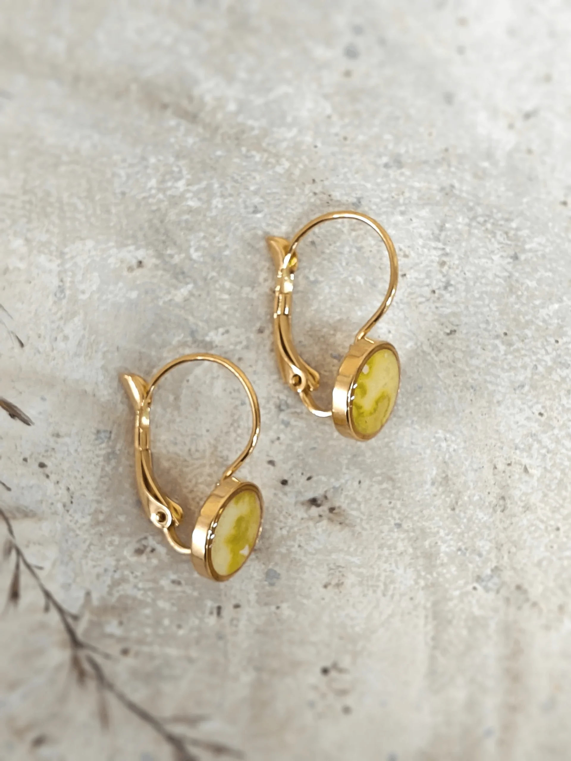 Kolczyki są pokryte żywicą, która zapewnia im trwałość i odporność na zarysowania czy przebarwienia. Wykonane z dbałością o każdy szczegół, prezentują się bardzo stylowo.
