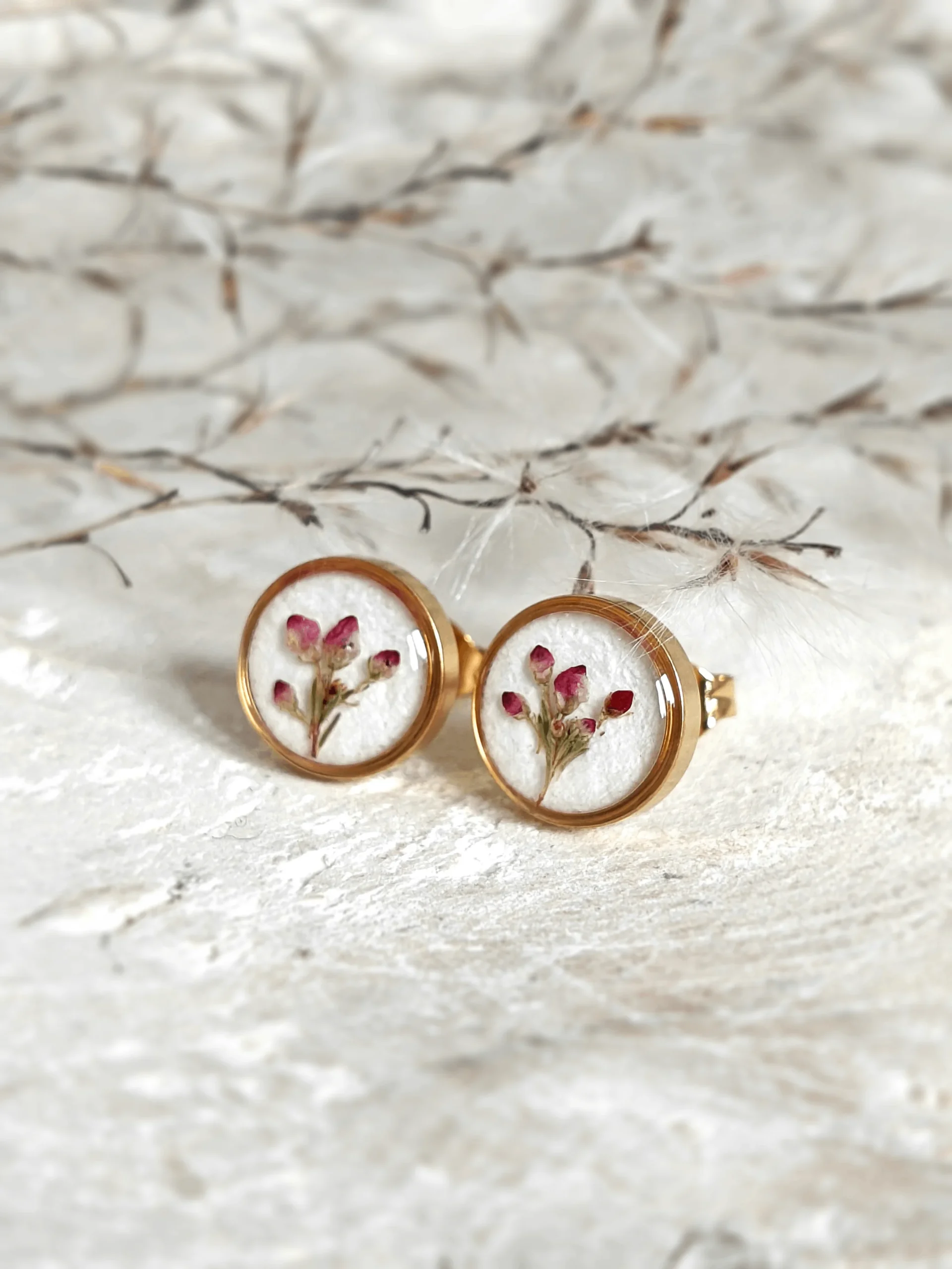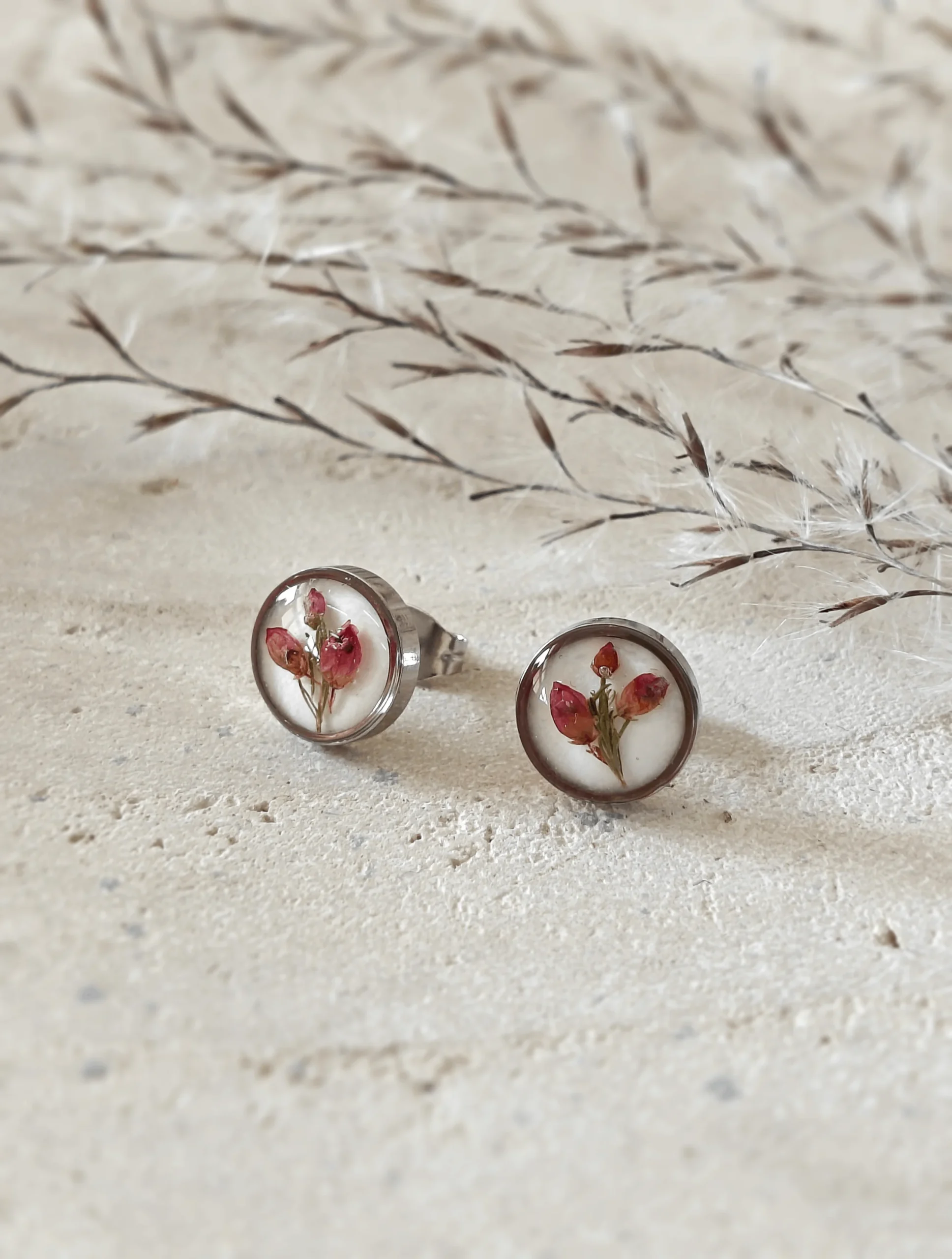 Odkryj piękno natury w nowoczesnym wydaniu. Nasz komplet biżuterii z wrzoścem to unikatowe połączenie suszonych kwiatów i przezroczystej żywicy. Delikatne kwiatki, zatopione w żywicy, tworzą subtelne kompozycje, które dodadzą wyjątkowego charakteru każdej stylizacji.