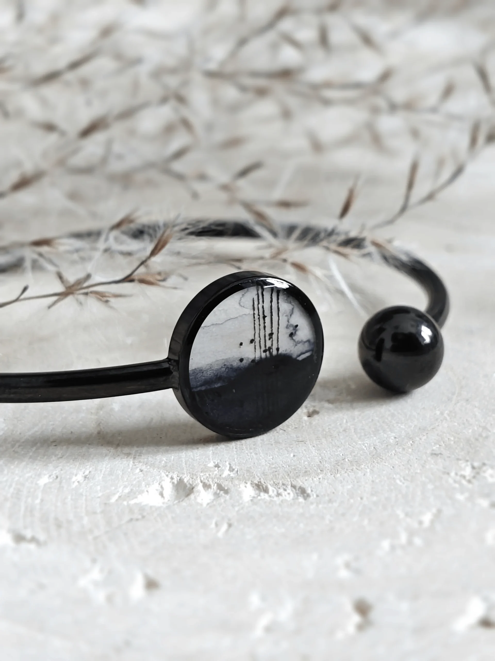 Szukasz wyjątkowej biżuterii? Mamy coś dla Ciebie – komplet malowany akwarelami. Kolczyki sztyfty (10 mm), bransoletka na łańcuszku i naszyjnik w złotej oprawie tworzą spójną całość.