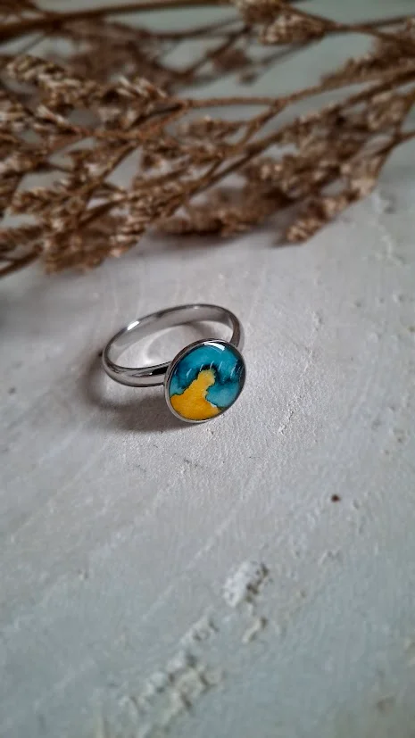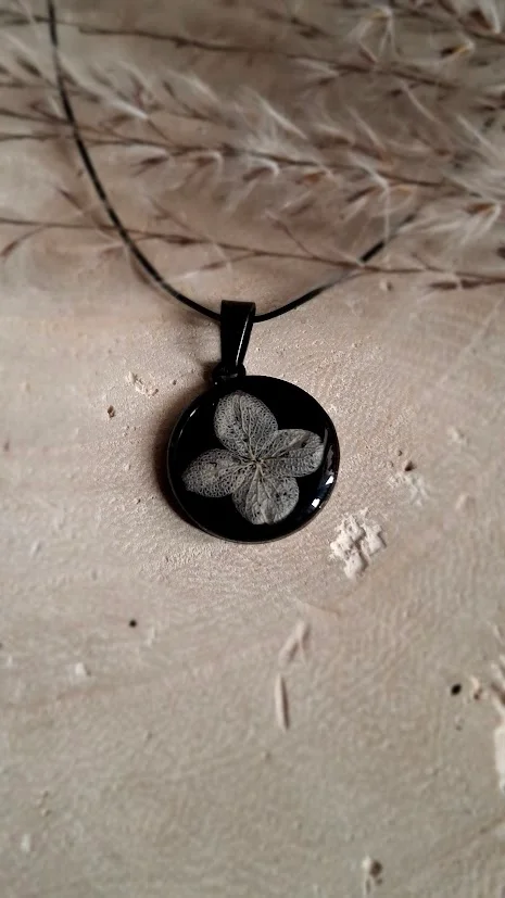 Ten zachwycający komplet biżuterii, z zatopionymi kwiatami dzikiej marchwi na tle ręcznie malowanej akwareli, to prawdziwa symfonia natury i artyzmu. W skład tego wyjątkowego zestawu wchodzą naszyjnik oraz wiszące kolczyki w srebrnej oprawie tworząc spójną i harmonijną całość. Każdy element tego kompletu jest małym dziełem sztuki, w którym delikatność polnych kwiatów łączy się z precyzją ręcznego wykonania.