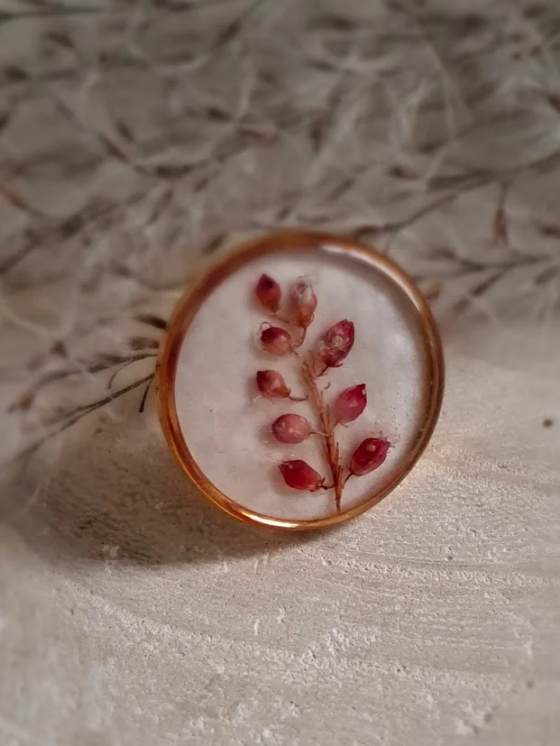 W centrum każdego elementu, na tle subtelnie malowanej akwareli, znajduje się zatopiony w żywicy kwiat dzikiej marchwi. Jego naturalne piękno, uchwycone w krystalicznie czystej żywicy, trwa wiecznie, ciesząc oko i duszę.