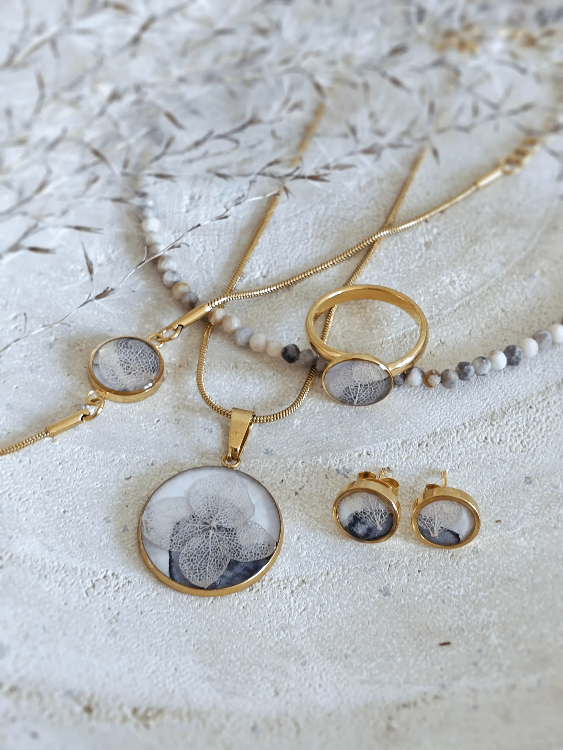Komplet biżuterii z płatkiem hortensji