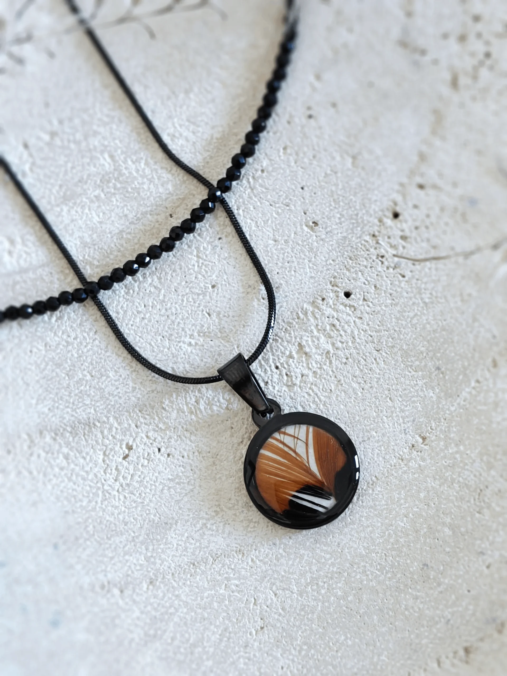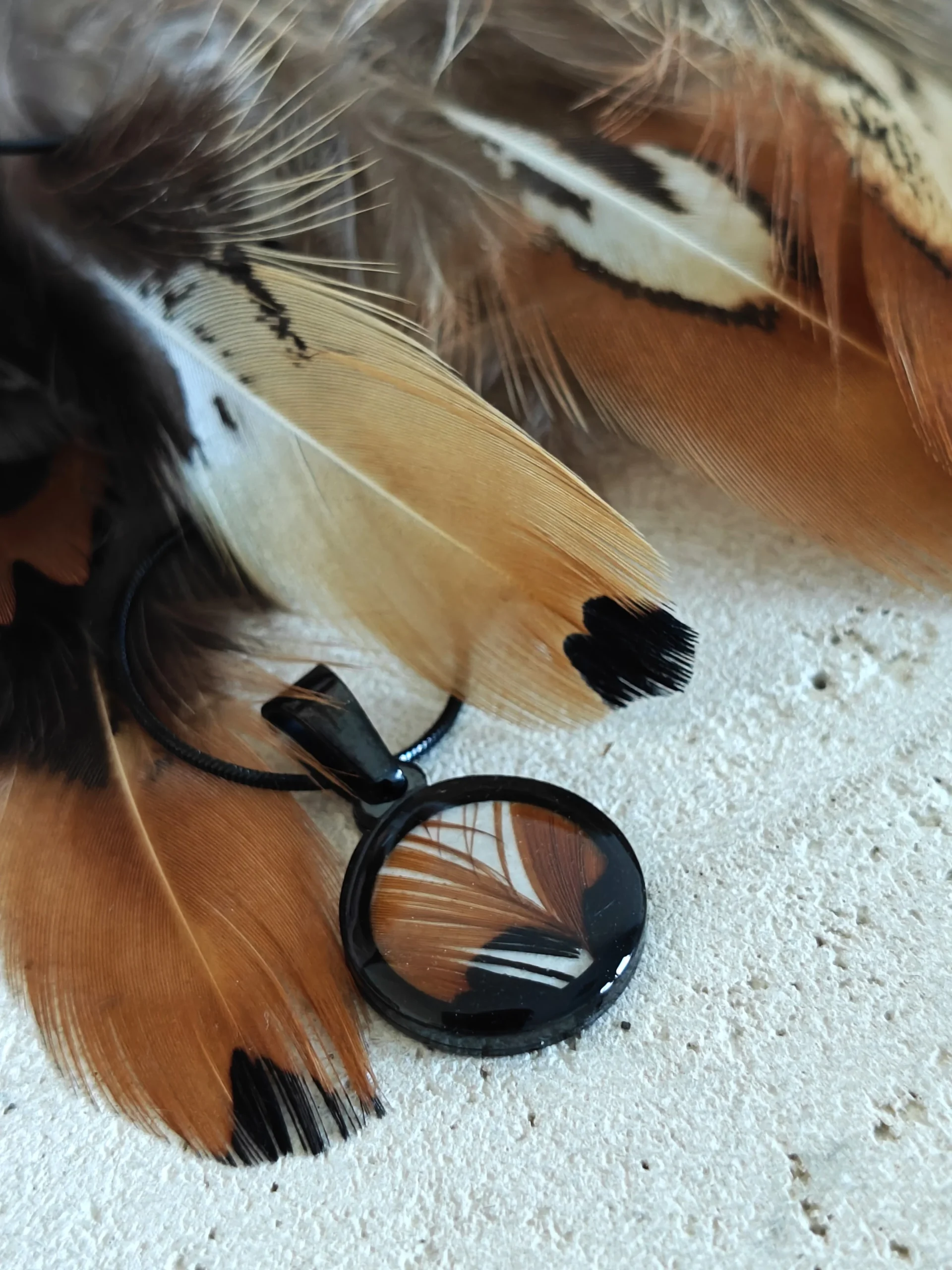 Pozwól swoim zmysłom wzbić się wyżej z kolekcją Volare. Nazwa ta symbolizuje lot i odwagę, a miedziane pióra bażanta przypominają barwy jesiennego lasu skąpanego w słońcu. Każdy naszyjnik to niepowtarzalny fragment natury, zatrzymany w czasie dzięki technice żywicy jubilerskiej. Stal szlachetna gwarantuje, że blask Twojej biżuterii nigdy nie zgaśnie. To biżuteria z duszą, która niesie w sobie dzikość i elegancję, idealnie dopełniając Twoją osobowość.