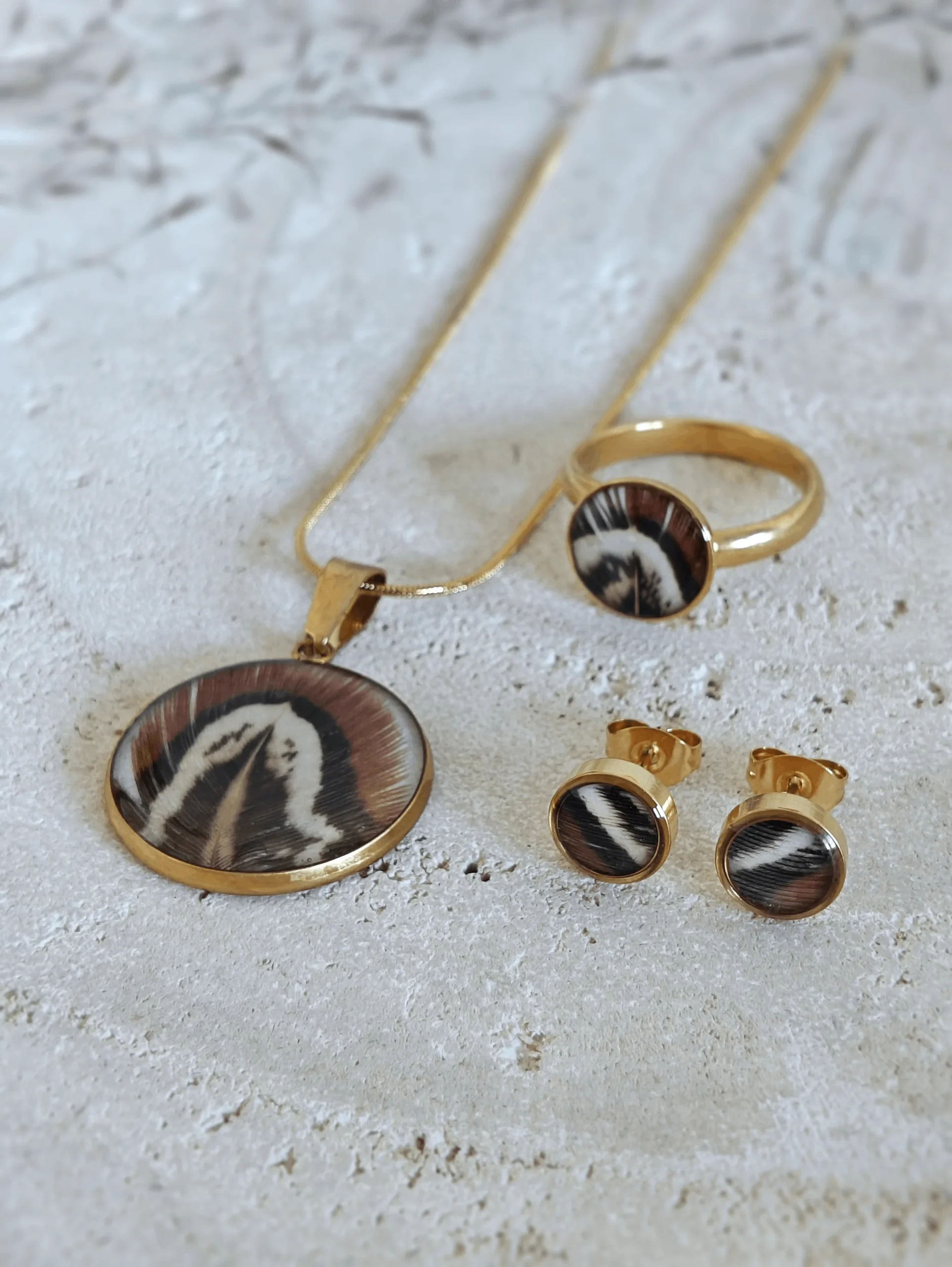 Biżuteria z inkluzją (sierścią, ząbkiem, piórkiem, wylinką) to rzemieślnicza praca z materią pełną wspomnień, by uhonorować obecność czworonoga, który stał się pełnoprawnym członkiem rodziny. Tłem biżuterii jest japońska rzemieślnicza, ręcznie malowana akwarela na papierze w 100% z bawełny.