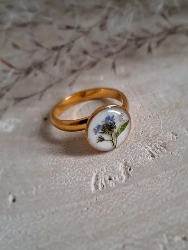 Pierścionek z małym oczkiem z niezapominajką