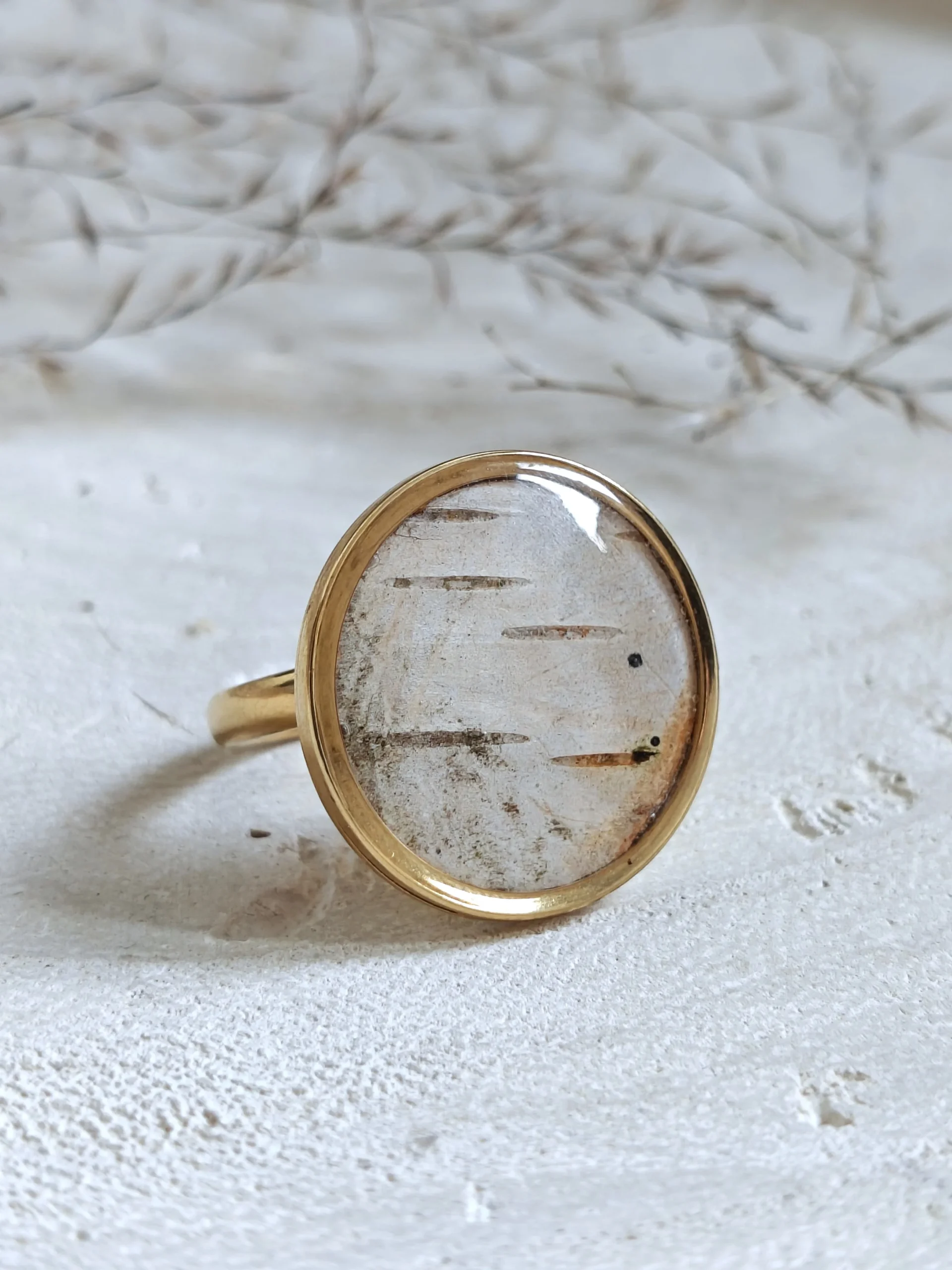 Pierścionek z żywicy z prawdziwą korą – z kolekcji Brzoza