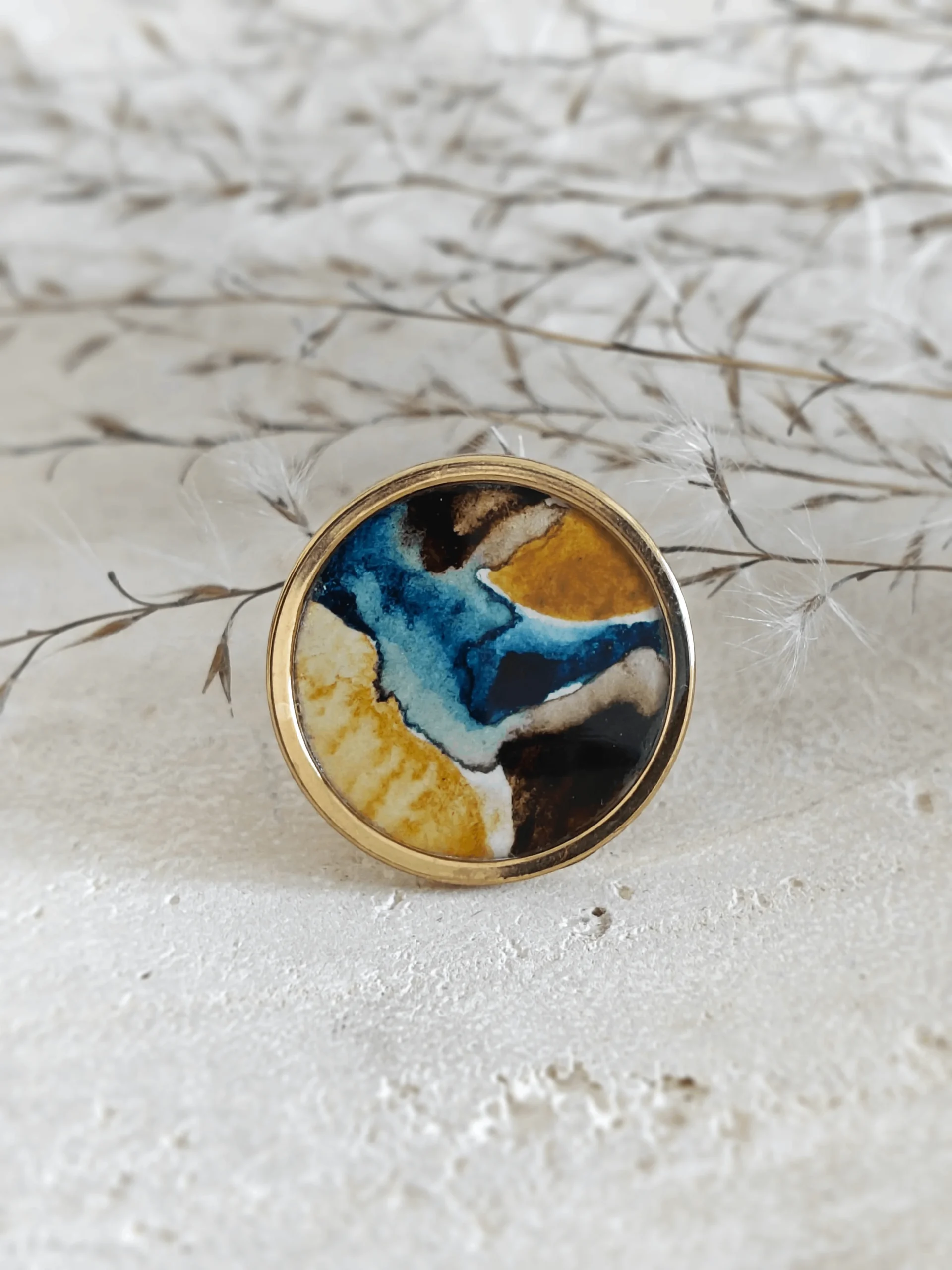 Komplet biżuterii artystycznej Fontis- malowana ręcznie akwarelami, turkus i granat