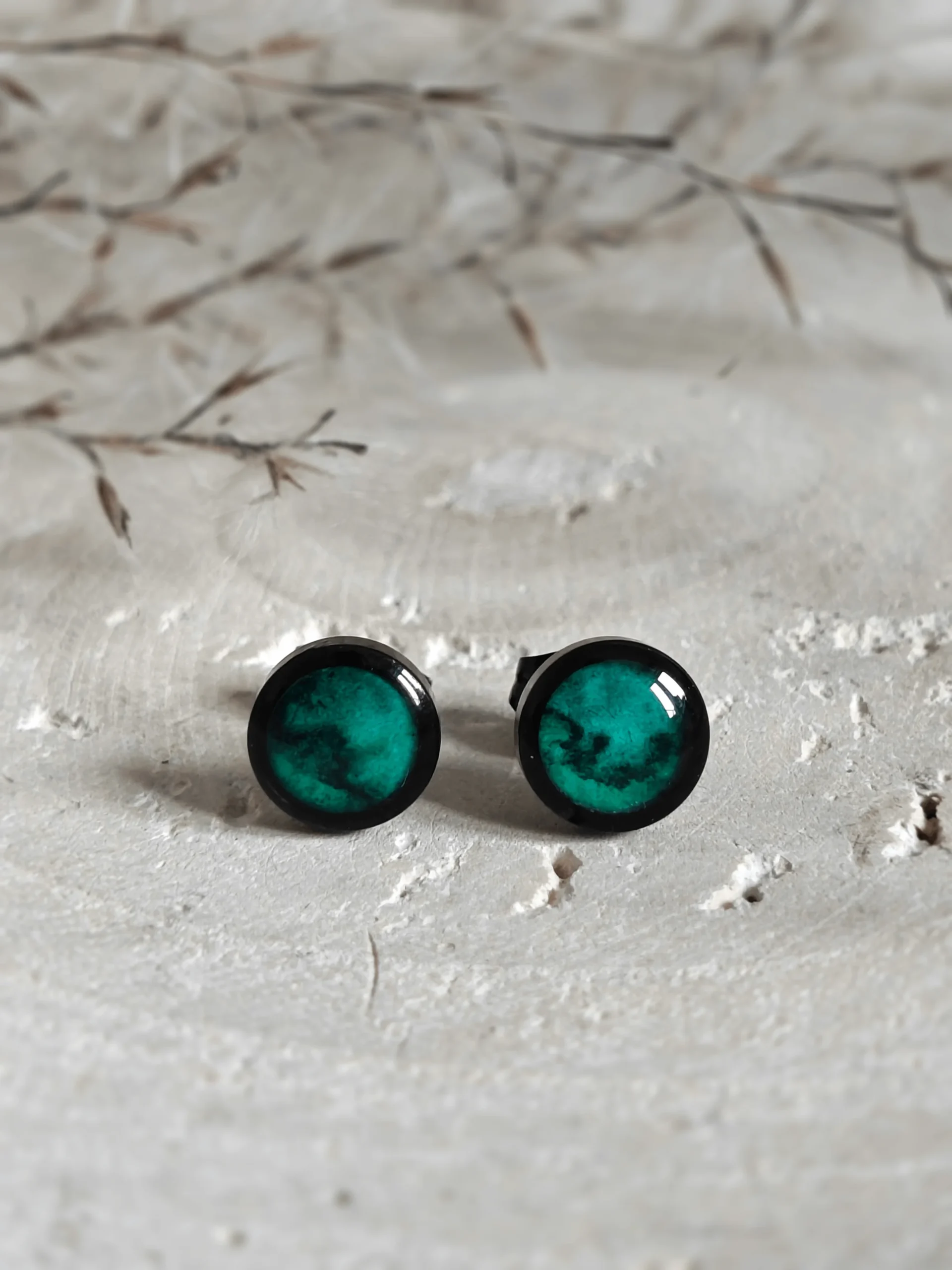 Odkryj głębię butelkowej zieleni. Nasze kolczyki sztyfty z ręcznie malowanym wzorem to wyjątkowy dodatek dla kobiet, które cenią sobie elegancję i oryginalność. Inspirowane pięknem mórz i oceanów, dodadzą Twojej stylizacji tajemniczości i głębi. Wykonane ze stali chirurgicznej są niezwykle trwałe i wygodne w noszeniu. To idealny wybór dla kobiet, które szukają harmonii i chcą podkreślić swoją indywidualność. Dostepne w 3 rozmiarach (6, 8, 10 mm) i w oprawie srebrnej lub złotej.