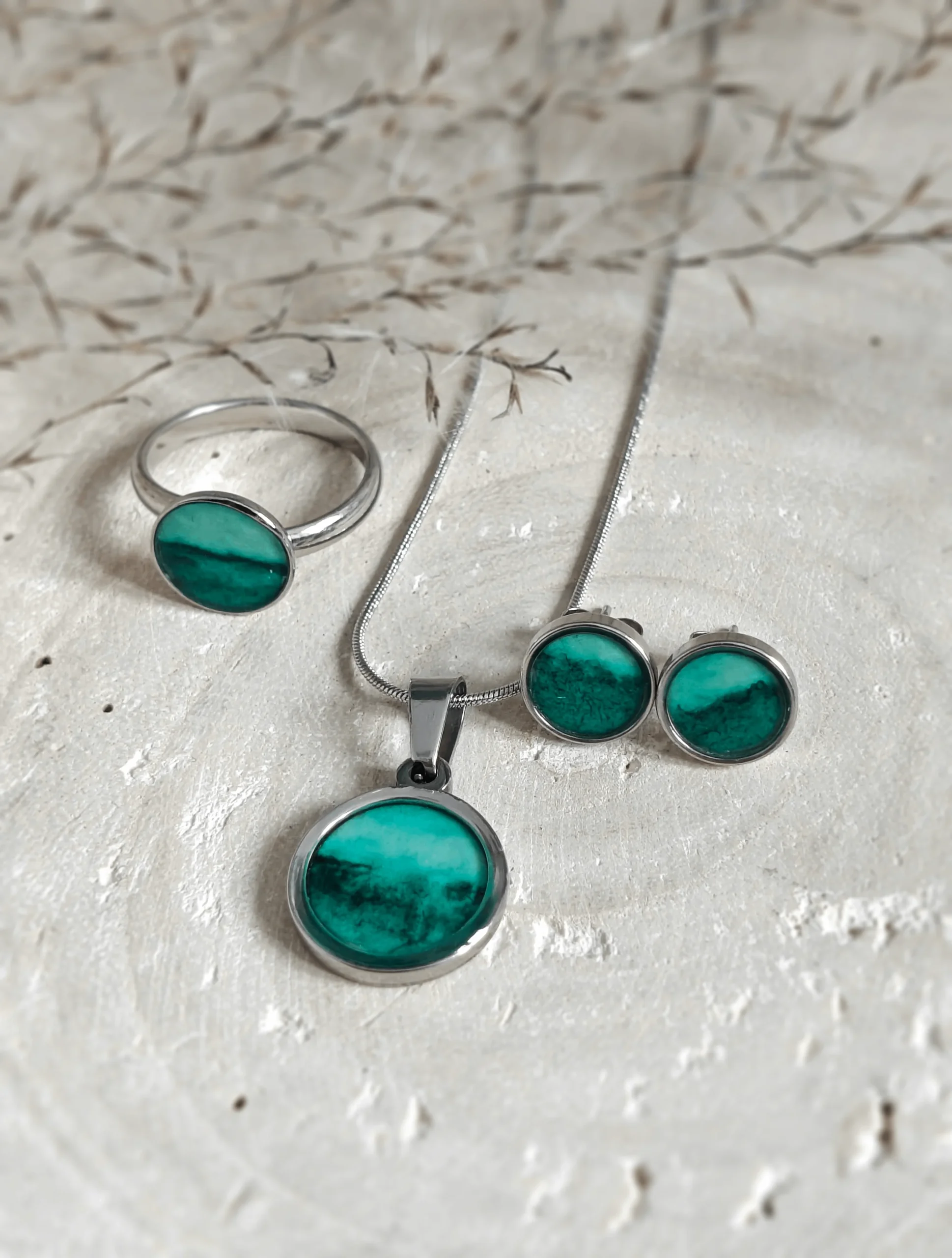 Dodatkowo, biżuteria w tym zestawie zawiera elementy wykonane z żywicy epoksydowej (producent: Crystalline 940).