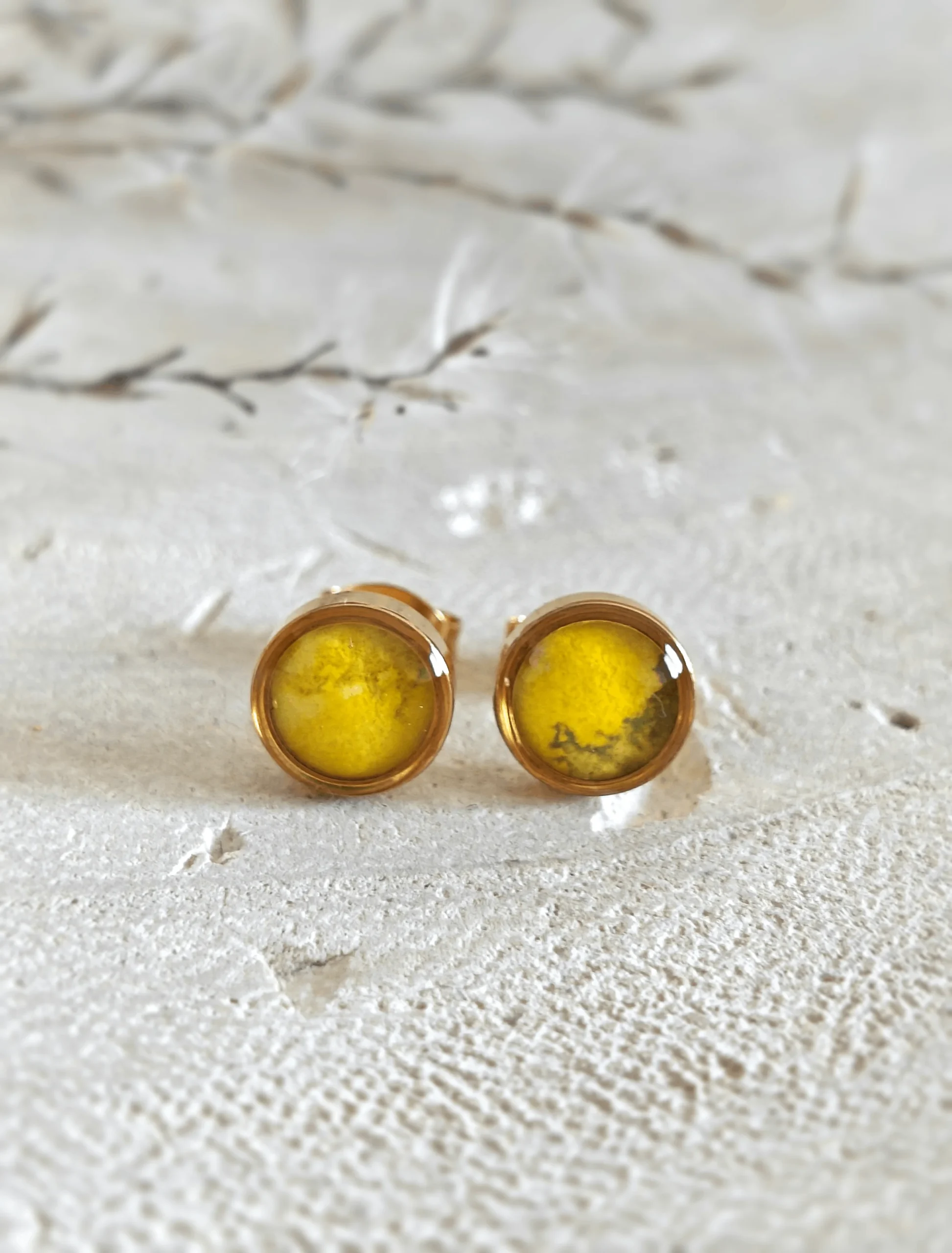 Kolczyki Apis to niezwykle efektowne kolczyki malowane ręcznie akwarelami z dominującym kolorem żółtym. To połączenie elegancji i trwałości. Akwarelowe kolczyki z żywicy są odporne na zarysowania i przebarwienia, a dzięki ręcznemu i starannemu wykończeniu prezentują się niezwykle stylowo. Kolekcja Apis nawiązuje do kamienia Jaspis Trzmiel, stąd cała kolorystyka kompletu, jak i kolczyków. Te duże kolczyki są niezwykle efektowne i będą przyciągać wzrok. Komfort noszenia zapewnia ich lekkość.