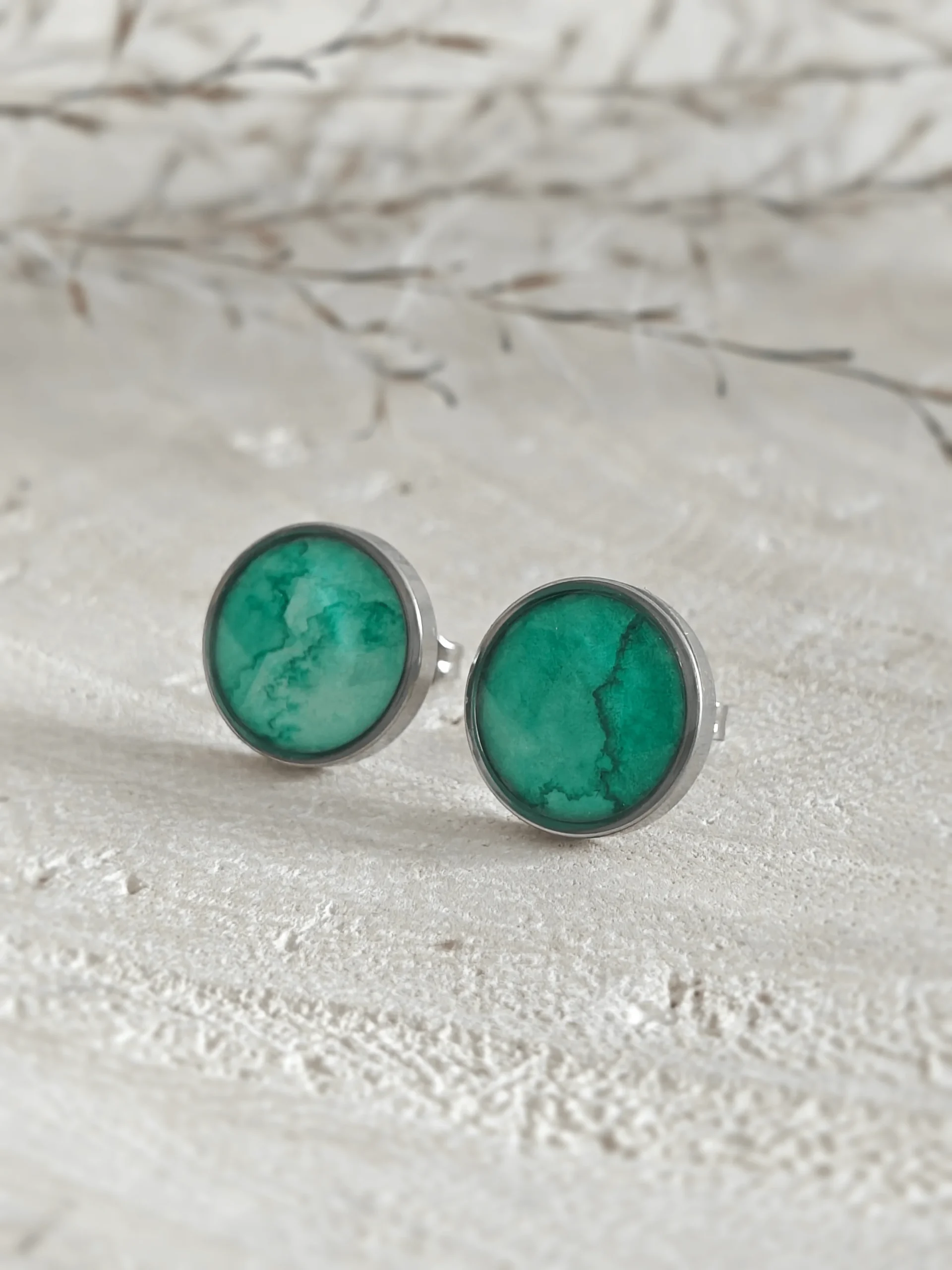 Kolczyki z kolekcji Serenity są malowane ręcznie akwarelami. Zielone kolczyki są bardzo efektowne i dodają świeżości każdej stylizacji. Założysz je zarówno do eleganckiej sukienki jak i do swetrów czy bluz. Odcień zieleni tych kolczyków jest bardzo wiosenny i delikatny, a dzięki ręcznemu wykonaniu – niezwykle efektowny. Te delikatne kolczyki założysz na codzień i od święta, są też pięknym pomysłem na prezent dla tych, co kochają kolor zielony.