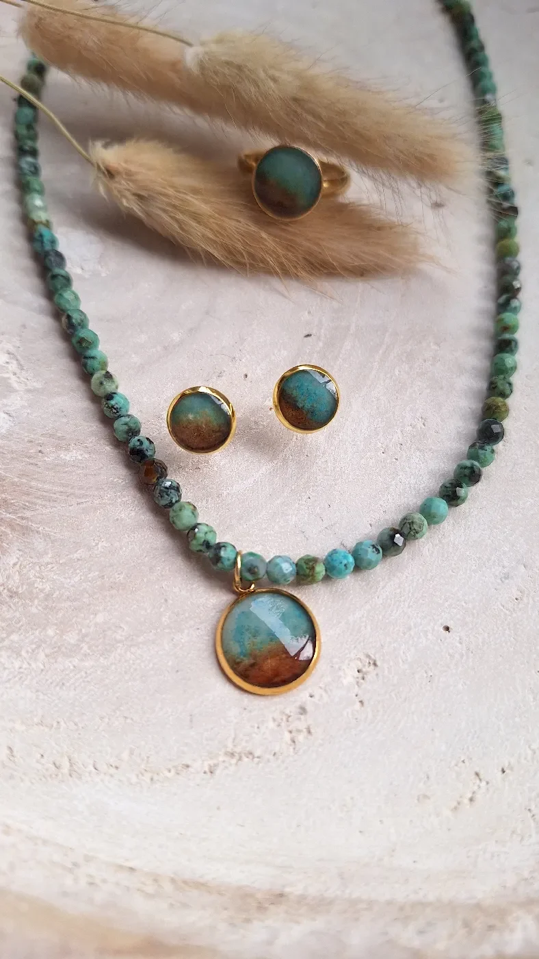 Komplet biżuterii z kolekcji Ubuntu – z turkusem afrykańskim i ręcznie malowaną biżuterią